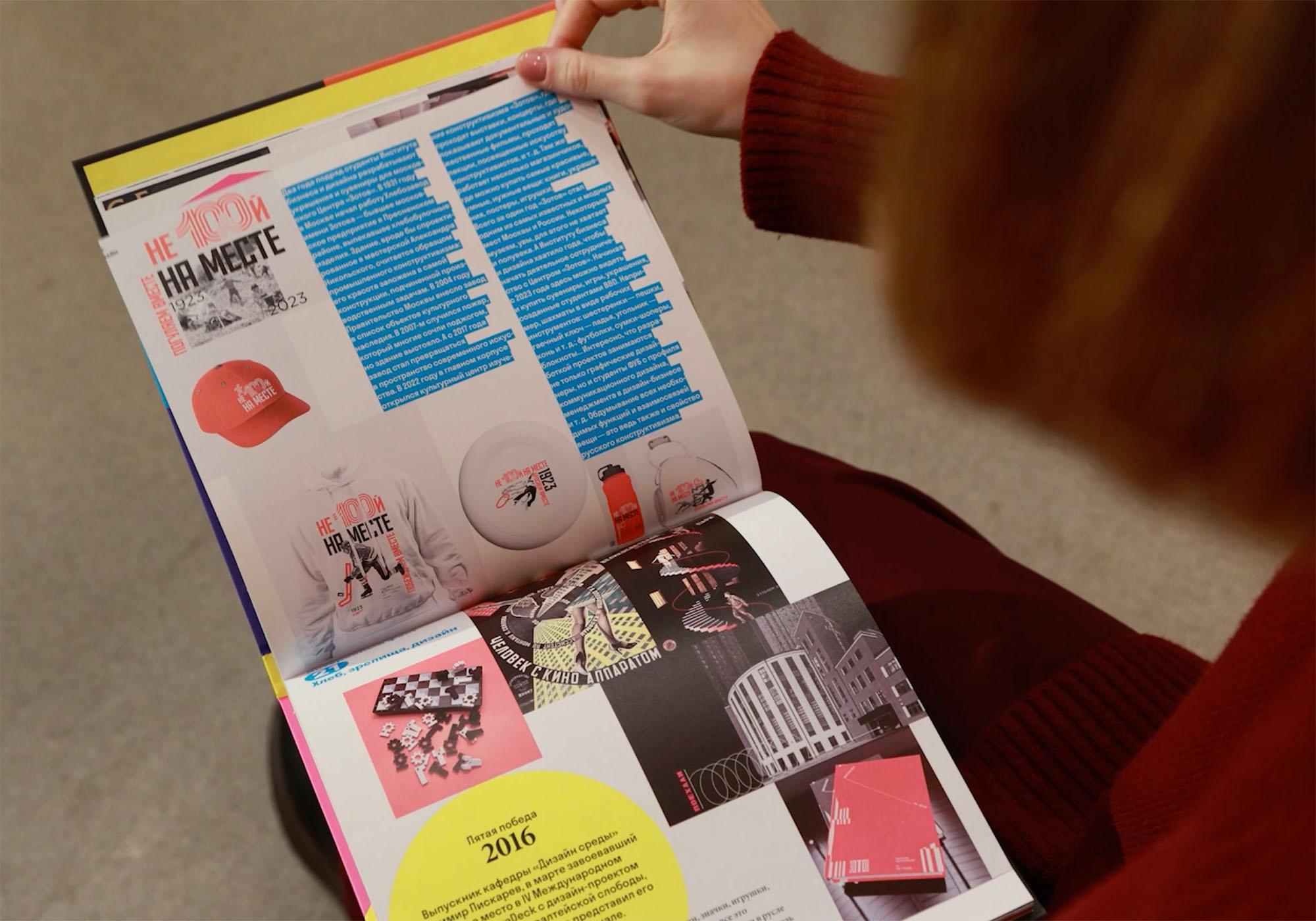 Книга предстаёт как полноценный арт-объект: каждая страница продумана с точки зрения композиции, ритма и текстур, создавая ощущение движения и глубины. Такой подход превращает чтение в визуальный опыт, где содержание и форма работают в гармонии, а само издание становится частью истории Института.