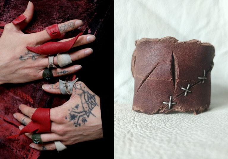 У меня просто есть потребность создавать, она почти такая же, как поесть. Вопрос, буду ли я это делать, даже не возникает. На старте дизайн-проектирования у меня всегда есть референсы, последние часто берутся из событий в мире, социальной или культурной повестки дня. Вдохновить может видео из интернета – в предметы я перевожу свою боль или другую реакцию на него. Мои коллекции – материальное воплощение личных переживаний. Предметы декора, мебели и украшения – сублимация, канал моих эмоций. Но мне ещё очень важно творить руками. Я переношу творческую энергию на объект почти в буквальном смысле. Экспериментирую: опускаю свои изделия в кислоту, обливаю щелочью, даже кровью, испытываю различные материалы, работаю с разными швами. В моих коллекциях есть аксессуары и украшения, вдохновлённые черепами животных, человеческими конечностями и зубами, стихиями огня и воды. И, конечно, я хочу демонстрировать их не на подиумах, а делать из них настоящие перфомансы.