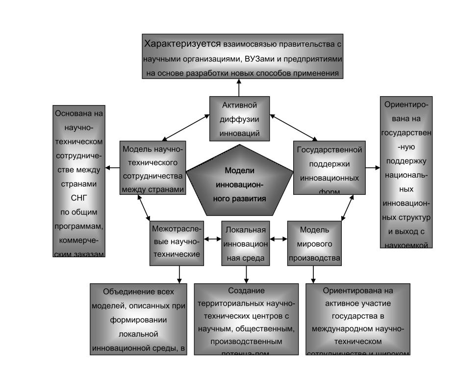 Поиск новых возможностей и механизмов в разработке и внедрении инноваций тесно связан с разработкой моделей инновационного развития, которые предусматривают повышение конкурентоспособности отдельных предприятий, их объединений и национальной экономики в целом на основе использования в производстве интеллектуального и научно-технического потенциала.