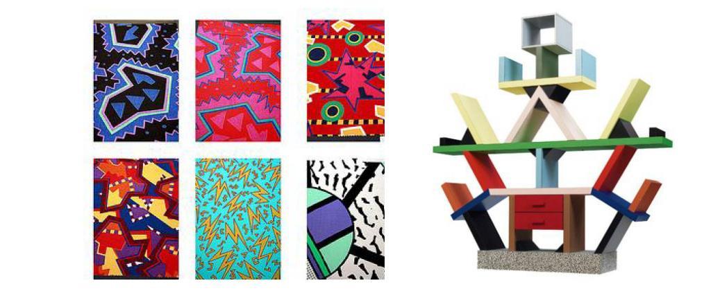 Рисунок 1 - Образцы ткани и книжный стеллаж «Карлтон». Этторе Соттсас, дизайн-студия Мемфис