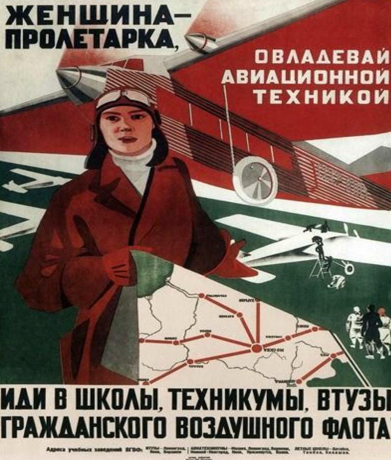 Рисунок 3 - Неизвестный художник. Плакат «Женщина-пролетарка, овладевай авиационной техникой»