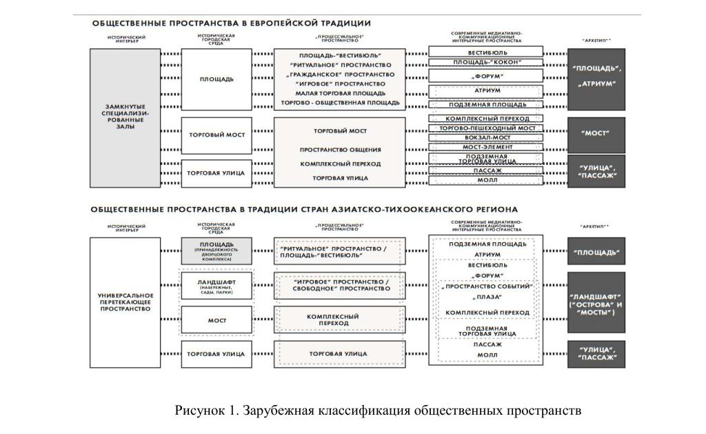 В зарубежной интерпретации классификация общественных пространств приведена на рис. 1.