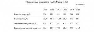 Финансовые показатели лишь подтверждают правильность выбранного курса развития для компании: за пять лет присутствия на рынке выручка возросла в четыре раза, а маржа чистой прибыли увеличилась на 2 %. Сегодня «Магнит» возглавляет список крупнейших ритейлеров России. Ему удалось пройти путь от региональной краснодарской компании до лидеров российского рынка. В 2013 г. Магнит опередил главного и крупнейшего конкурента в сфере российского ритейла – X5 Retail Group, став сетью номер один по выручке и количеству открытых магазинов [7]. Ритейлер «Магнит» – уникальная компания, которая не только остается растущей от года к году, но и наращивает темп развития. Сеть магазинов сумела сделать рост своей визитной карточкой. И судя по всему руководство компании готово штурмовать все новые вершины.