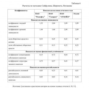 Таким образом, на первом месте в рейтинге оказалась компания ПАО «ЛУКОЙЛ», следовательно, её можно считать наиболее финансово устойчивой, близкой к эталону в отрасли. Второе и третье место заняли ПАО «Газпром» и ПАО «Роснефть» с R = 1,4 и 1,68 соответственно. Поэтому эти предприятия можно условно отнести к предприятиям с удовлетворительной финансовой устойчивостью.