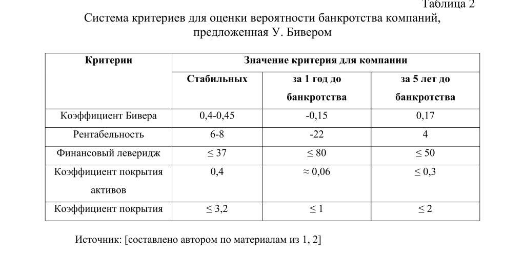 систему критериев (авторские методики (методика У. Бивера); официальные отечественные, рекомендованные к использованию различными министерствами и ведомствами подходы);