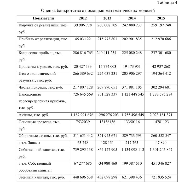 Для более точной оценки вероятности банкротства ПАО «ЛУКОЙЛ» следует рассмотреть эти пять математических методов, с использованием формул, представленных в таблице 4.