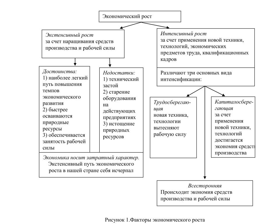 Развитие сельского хозяйства осуществляется в соответствии с объективными экономическими законами расширенного воспроизводства. Рост объемов производства сельскохозяйственной продукции при этом может осуществляться двумя путями: экстенсивным и интенсивным (рисунок 1). Экстенсивный путь развития сельского хозяйства означает увеличение производства сельскохозяйственной продукции за счет количественных факторов — распашки новых земель и расширения посевных площадей, на прежней технической основе без существенного изменения техники и технологии производства и неизменной продуктивности земли и скота. Экстенсивный путь развития не имеет широкой перспективы, поскольку количество земель, пригодных для сельскохозяйственного использования, ограничено и не может быть увеличено. Следовательно, при данном пути рост производства сельскохозяйственной продукции не может быть беспредельным.