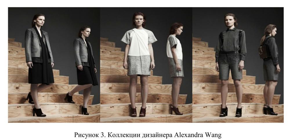 Самым ярким представителем стиля «урбанистический шик» является Alexander Wang. С самого начала своей карьеры Wang вдохновлялся городом. Его коллекции пропитаны духом города, начиная от силуэта, заканчивая цветовыми решениями (см. рис. 3).