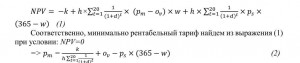 Минимально рентабельный тариф найдем из выражения (1), который представляет собой чистый дисконтированный доход от владения собственным танкером (в случае, если мы получаем доход по арендной ставке p (долл./день)):