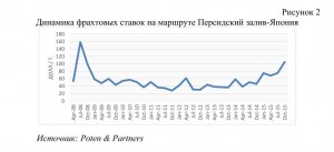 - Табличные значения и динамика фрахтовых ставок по маршруту за период с апреля 2008 г. по октябрь 2015 г. представлены на рисунке 2.