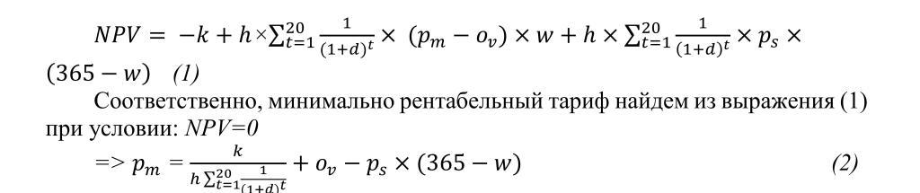 Минимально рентабельный тариф найдем из выражения (1), который представляет собой чистый дисконтированный доход от владения собственным танкером (в случае, если мы получаем доход по арендной ставке p (долл./день)):