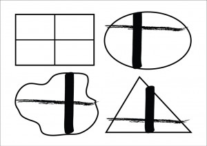 Как отмечали многие исследователи, зрительное восприятие это не только опосредованное представлениями восприятие пространства, но и психофизиологическое напряжение (индукция). Оно вызвано здесь и сейчас непосредственным функциональным действием – наблюдением или концентрированным вниманием за любым объектом в окружающем мире или его расположением в рамках пространства картины. Рисунок 1 иллюстрирует факт того, что любое пространство цельно, гармонично или уравновешенно само по себе исходя из своей природы. В нем присутствуют основные пространственные ориентиры, которые без нашего желания, наделены пространственно-структурными понятиями. Убедиться в структурности пространства картинной плоскости достаточно просто. Если сложить простым геометрическим способом лист бумаги, или вылить на стену флакон туши, то мы сможем увидеть, как проявятся его пространственные характеристики. Эти характеристики можно изобразить графически, что и демонстрирует рисунок 2.