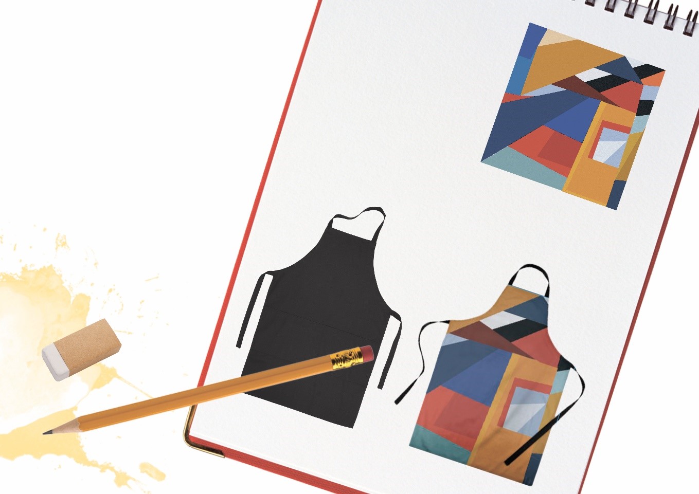 Дополнительным творческим заданием стало создание собственного принта для рекламной продукции проекта – фартука. За основу нами взят принцип геометрии конструктивизма: четкие формы и линии. На фартуке изображен стилизованный вагон трамвая, несущийся по московским улицам, символизирующий силу техники и одновременно легкость движения (рисунок 12).
