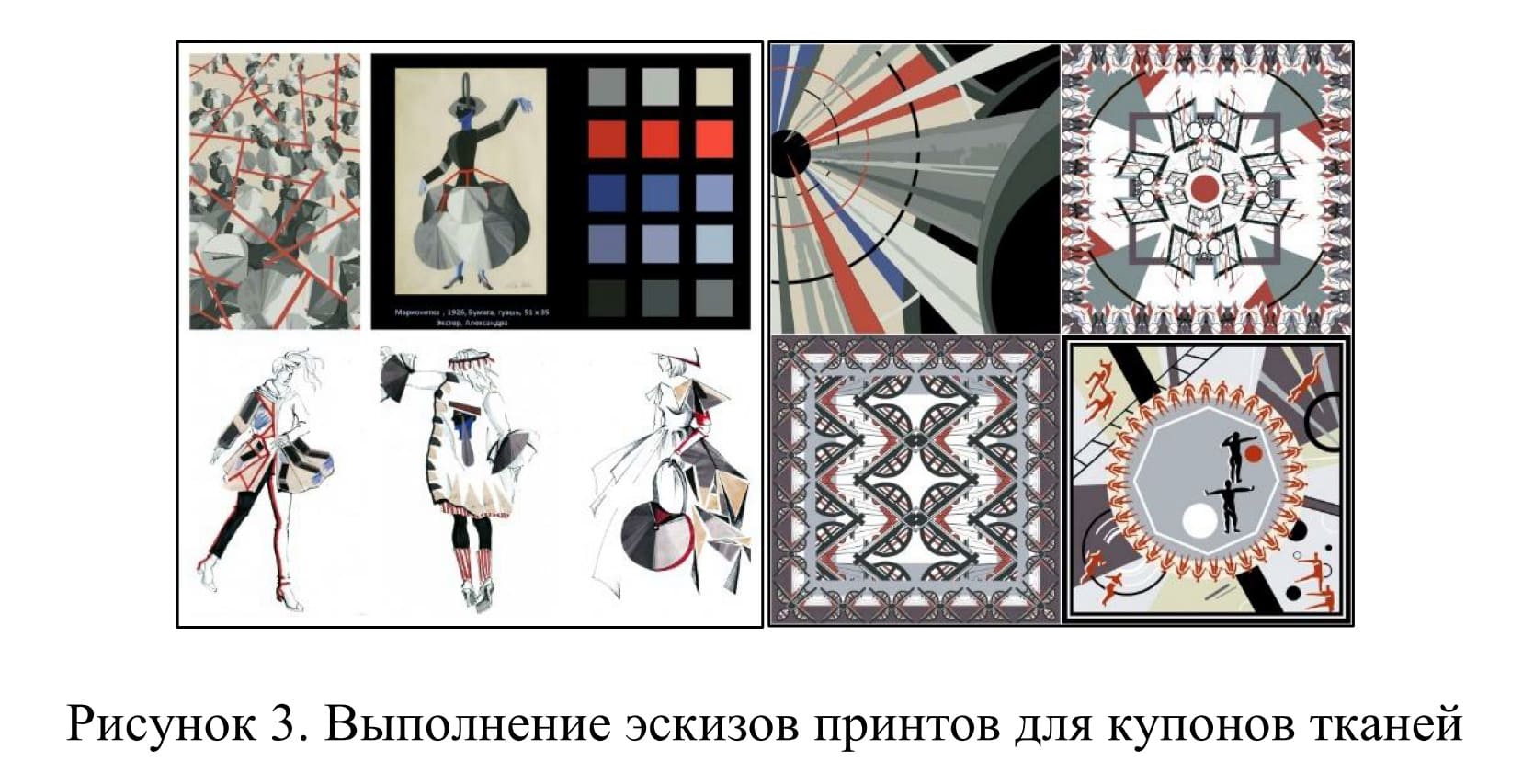 Keywords: design project; design and research activity; project method; costume design; sketching; Russian avant-garde; coupon fabric.