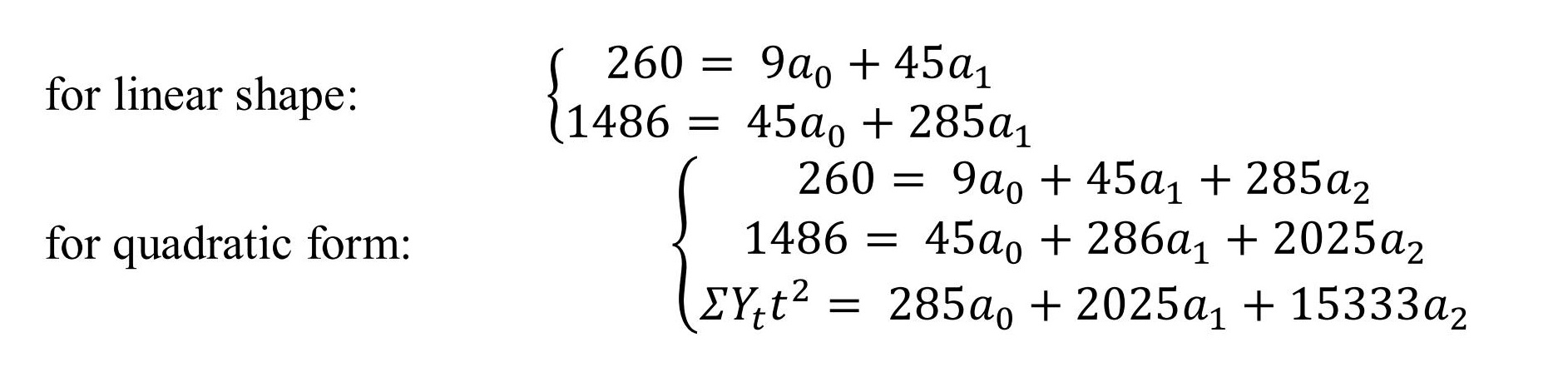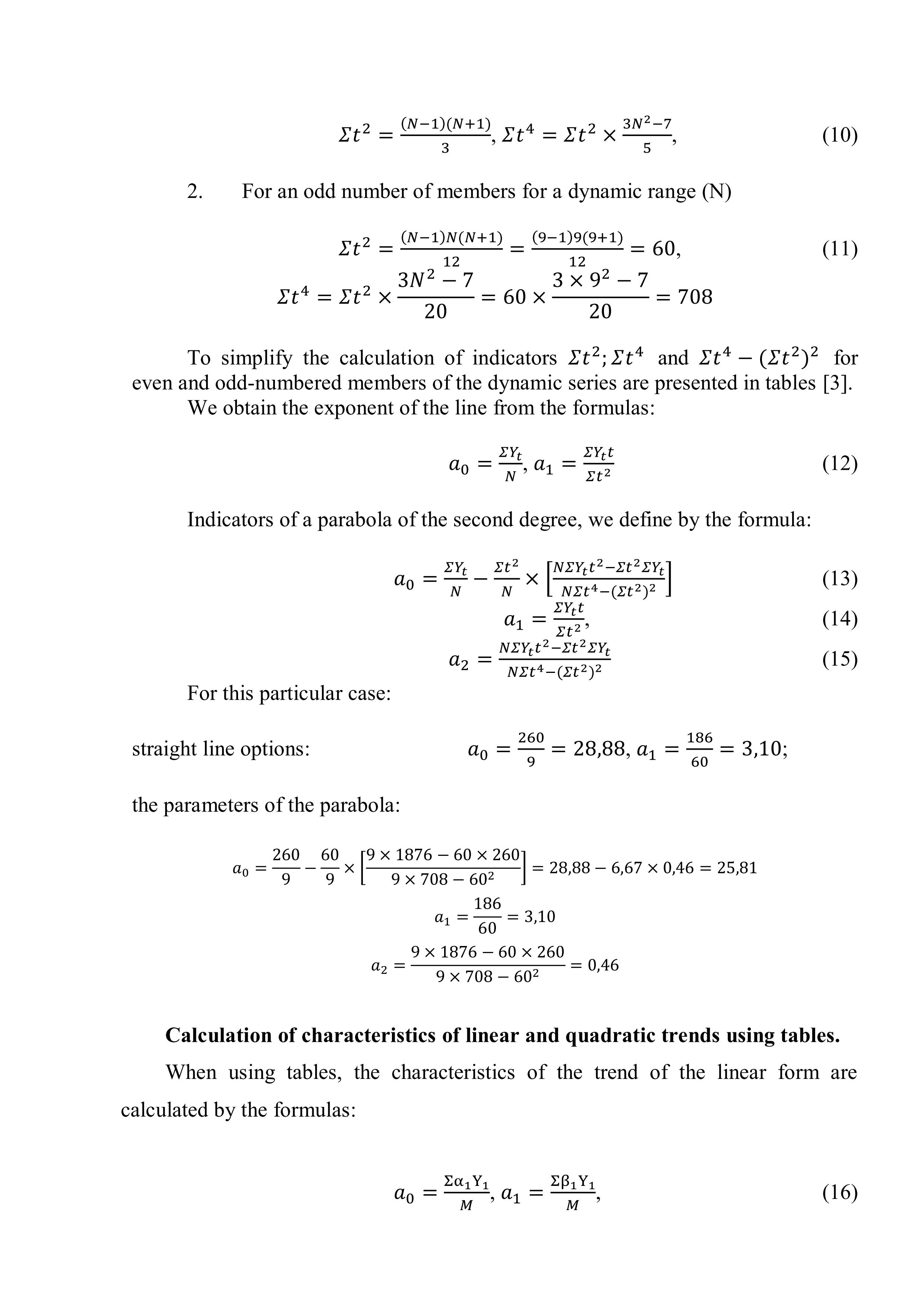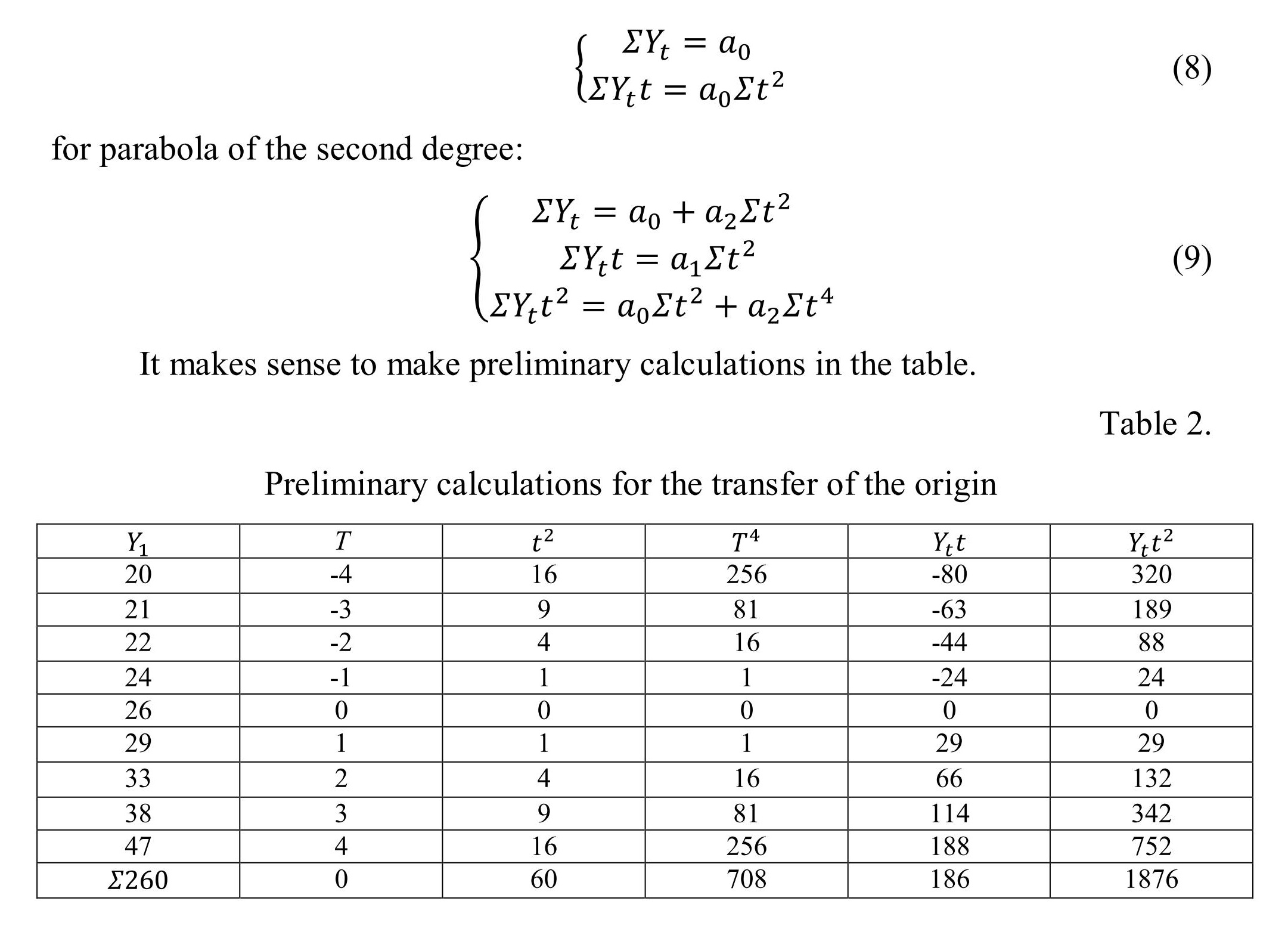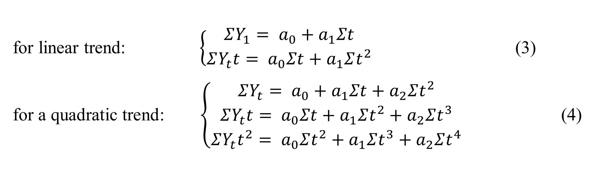 For example, systems of ordinary equations for estimating the characteristics of trend polynomials of linear and quadratic form have the form: