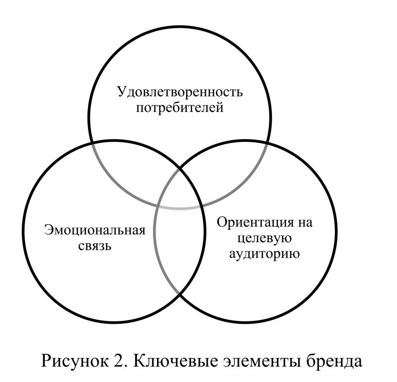 Согласно модели «Колесо бренда» [2] во главу угла ставится идея, предлагаемая потребителю, в частности особые суммарные выгоды от потребления данного бренда, принадлежность к особой группе людей, пользующихся данным брендом. Также можно выделить основные ключевые элементы, присущие успешным брендам.