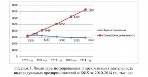 До 2014 г. количество индивидуальных предпринимателей сильно уменьшилось, о чем говорят данные на рисунке 1. По статистике лишь 3,4% малых предприятий в России живет более трёх лет, остальные закрываются раньше.