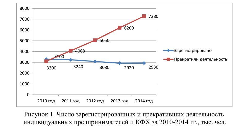 Несмотря на рост вновь регистрирующих предприятий, удержать существующие государству практически не удается. Только за 2014 г. – март 2015 г. была прекращена деятельность 647 тысяч индивидуальных предпринимателей и 21928 фермерских хозяйств.
