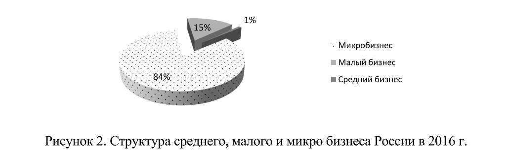 На рисунке 2 приведена структура среднего, малого и микро бизнеса по количеству предприятий за 2016 г. в графической форме.