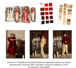 Студентам старшего курса, которые в течение двух лет изучали дисциплину «История искусств», по ее завершении был предложен проект «Репродукция». Задачей данного проекта стало применение теоретических знаний в конкретной проектной разработке. Это позволило привнести в учебный процесс «свежую струю» и дать возможность студенту, основываясь на знании теории, раскрыть в себе новые возможности творчества и расширить свои перспективы. Группе студентов было предложено разработать авторские коллекции одежды, которые бы явились своего рода репродукциями произведений мастеров живописи и графики, при этом выражали свои личные концепции. Главным принципом проекта было выбрать художественное произведение из курса «История искусств» и предложить именно свою проектную разработку, при этом уйти от прямого цитирования произведения.