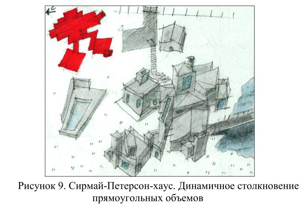 Гери в резиденции Сирмай-Петерсона развил идею дома Бенсона, где также два жилых блока соединялись через открытую уличную лестницу (см. рисунок 9).
