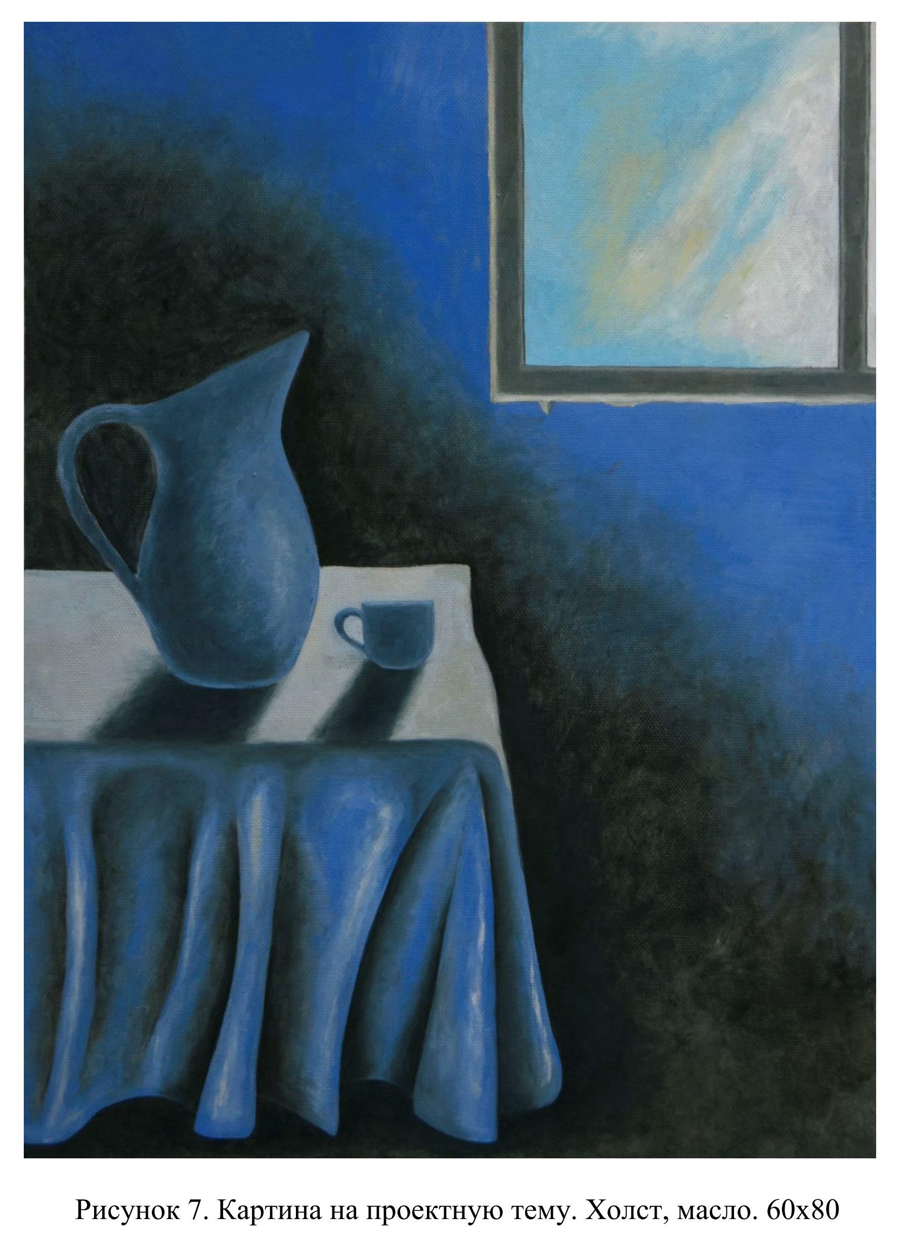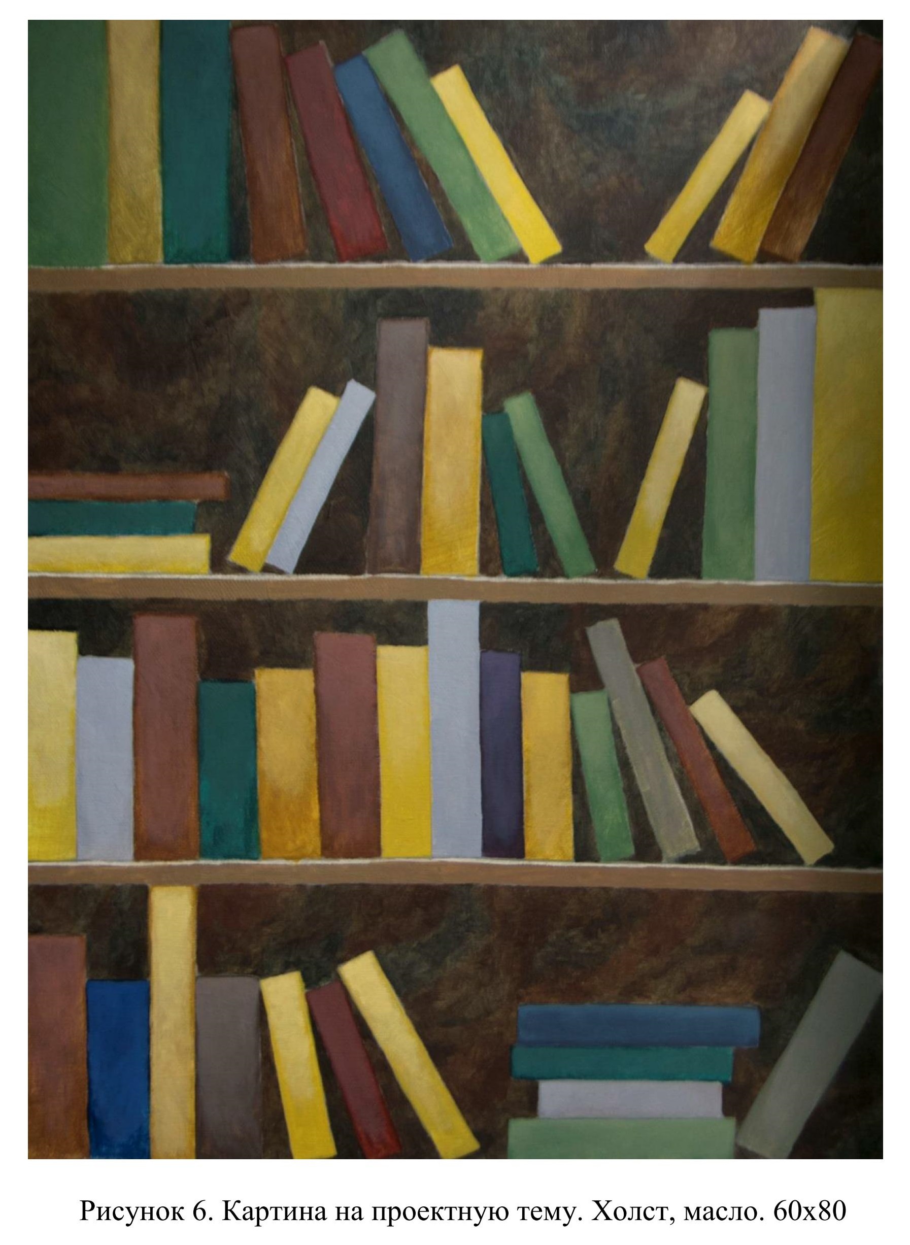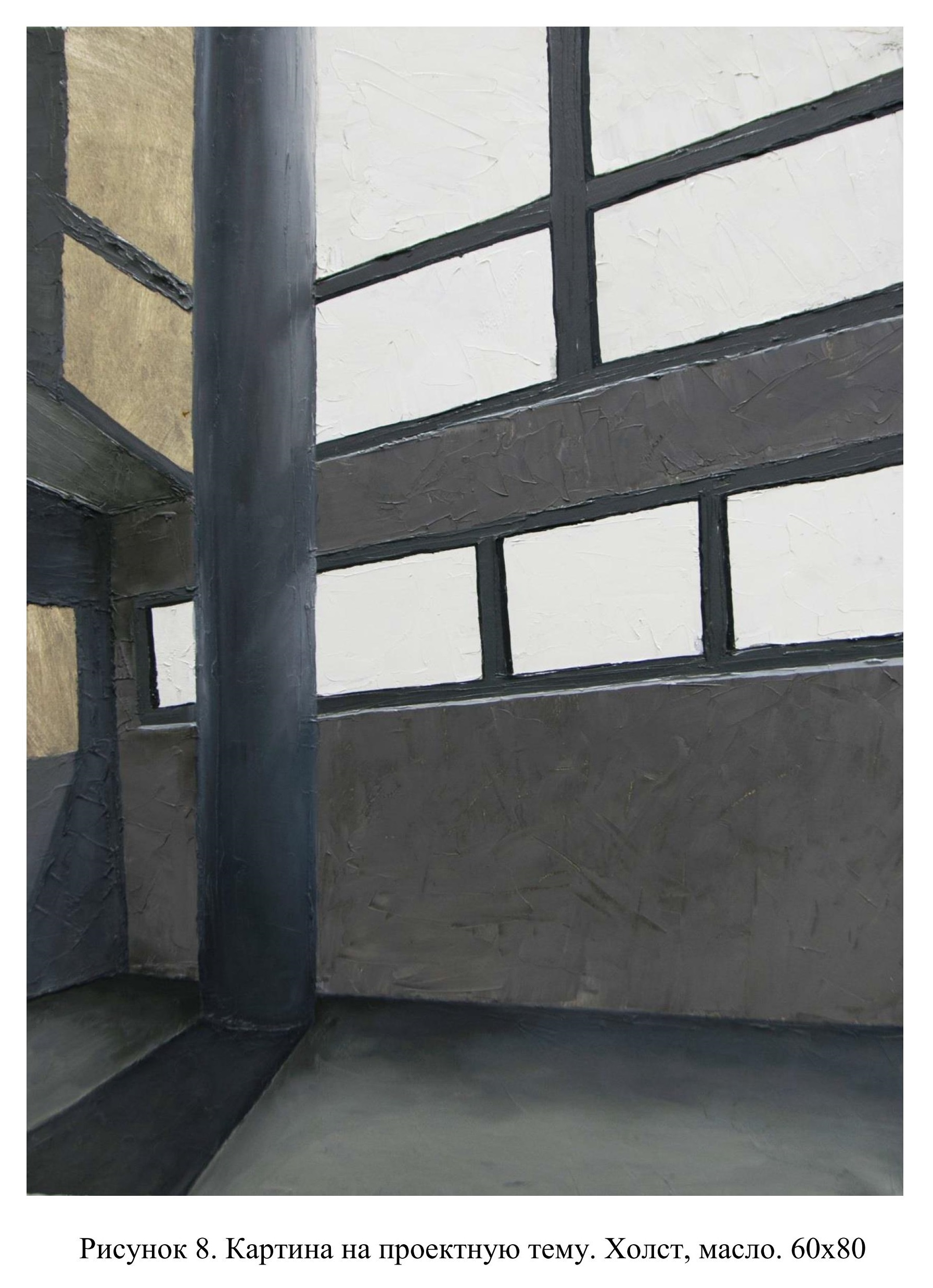 Вместе с тем живописное полотно на проектную тему обладает рядом преимуществ перед любой другой проектной графикой. Во-первых, это выражение эмоции, в том числе в абстрактной форме, где каждый может найти для себя что-то свое. «Моими лучшими учениками я считаю тех, которые сумели, доверяя своей интуиции, открыть для себя свой собственный путь в искусстве. Только внешнее подражание и копирование того, что дает учитель, не позволяет проявить себя в полную силу», - говорил Иоханнес Иттен [3, с. 4]. И с ним трудно не согласиться.