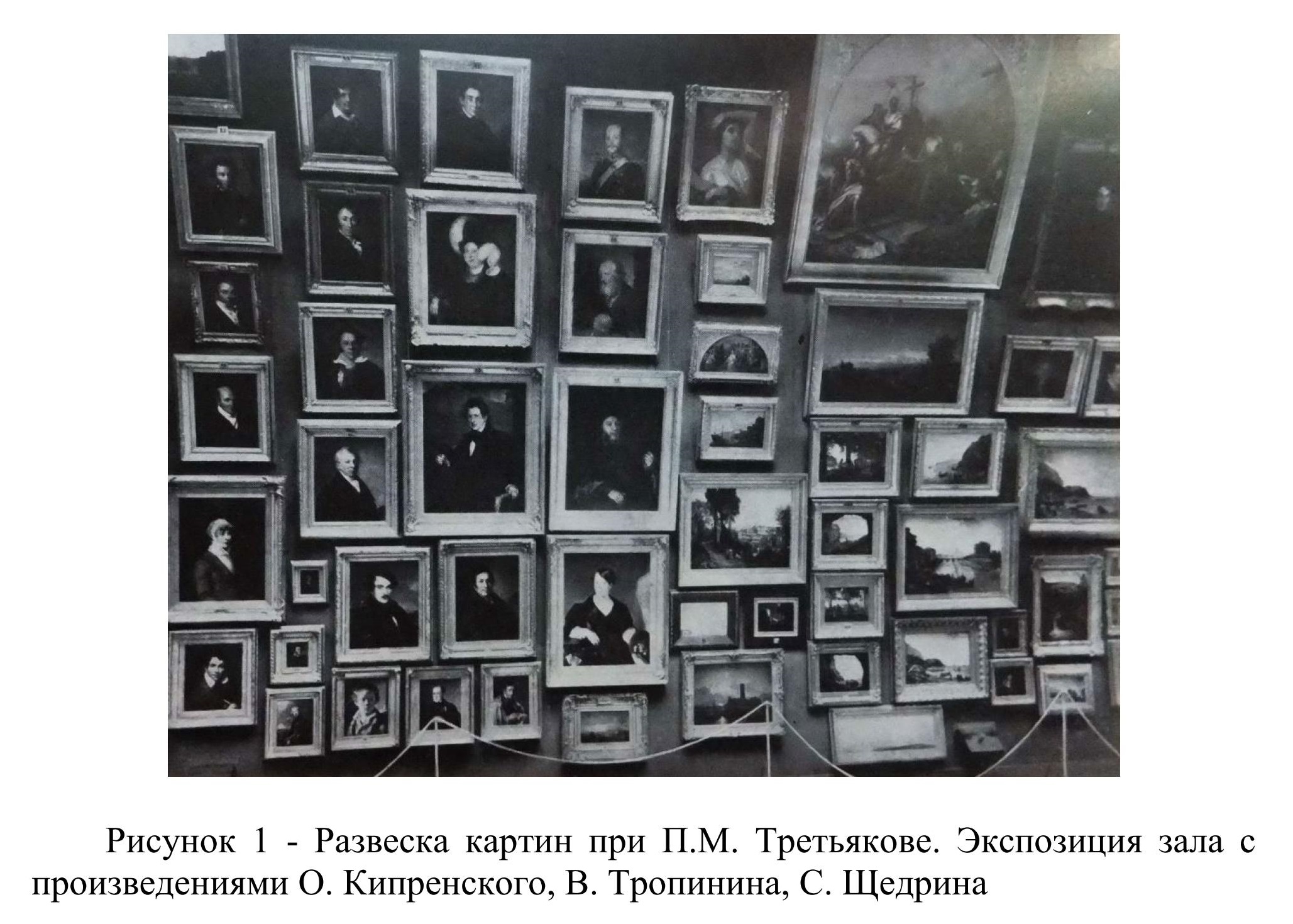 В свете новых задач, стоящих перед Советом, главной проблемой было расширение экспозиционной площади, так как уже при П.М. Третьякове практически не было свободного места для картин, что подтверждают фотография выставочного зала, где картины размещены очень тесно от пола до потолка (рисунок 1).