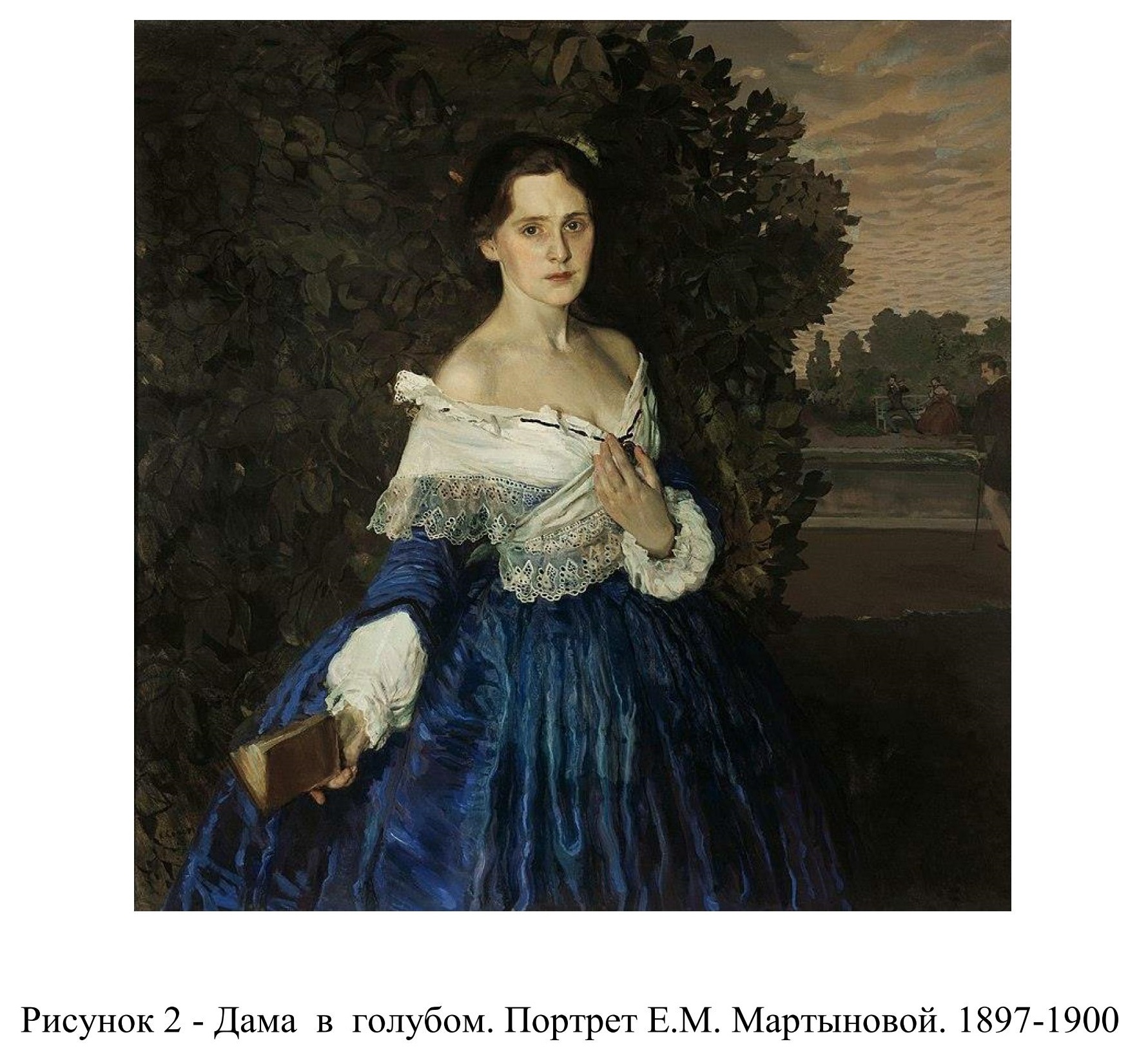 В начале января 1903 г. в Петербурге открылась выставка Константина Сомова. Остроухов, В.А. Серов и А.П. Боткина приобретают с этой выставки для галереи «Даму в голубом» (рисунок 2). Князь В.М. Голицын называет это приобретение излишним, а И.Е. Цветков считает цену картины чрезмерно высокой, равно как и цену картины Николая Рериха «Город строят», купленной Советом.
