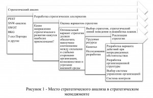 Стратегический анализ рассматривается в качестве одного из этапов стратегического менеджмента, является первым этапом в деятельности по разработке стратегии, выступает инструментом определения факторов, влияющих на деятельность предприятия. Существует множество различных методов, направленных на выявление места и ниши предприятия на рынке, перспектив его развития, наиболее перспективных средств и каналов коммуникации с потенциальными потребителями, возможностями выхода на новых клиентов и целевые рынки.