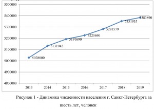 На рисунке 1 приведена динамика численности населения г. Санкт-Петербурга с 2013 по 2019 гг.