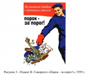 В СССР самым мобильным, оперативным и распространенным видом изобразительного искусства была графика: журнальный, газетный рисунок и плакат. Развивались два типа плаката: героический и сатирический. Искусство плаката было доступно широким массам, его смыслы были понятны каждому, а короткий броский текст - лозунг, который сопровождал изображение, запоминался и призывал людей к действию. Многие уже затрагивали представленную тему в своих публикациях. Данная статья также основывается на информации, полученной путем анализа исторических источников и научной литературы [1; 8, с. 220-223; 9, с. 203-210]. Заметим, что тема советского плаката в последние годы нашла отражение и в зарубежной литературе [10, pp. 103-125].