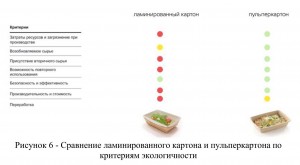 Самым доступным вариантом из экологичной упаковки на рынке является пульперкартон. Проведем на основе исследования Яндекс.Лавки [6] сравнение ламинированного картона и пульперкартона по критериям экологичности и представим в рисунке 6, где зеленый круг — проблема решена, желтый — отчасти решена, красный — не решена.