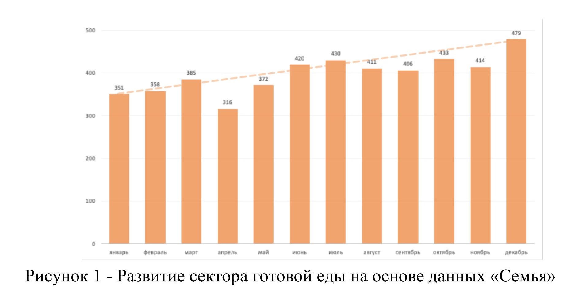 Рассмотрим развитие сектора готовой еды на основе данных продаж локального ритейлера «Семья», отразим результаты в рисунке 1. Данные в рисунке представлены в количествах купленных единиц в месяц (тыс.) в период с январь по декабрь 2020 г.: