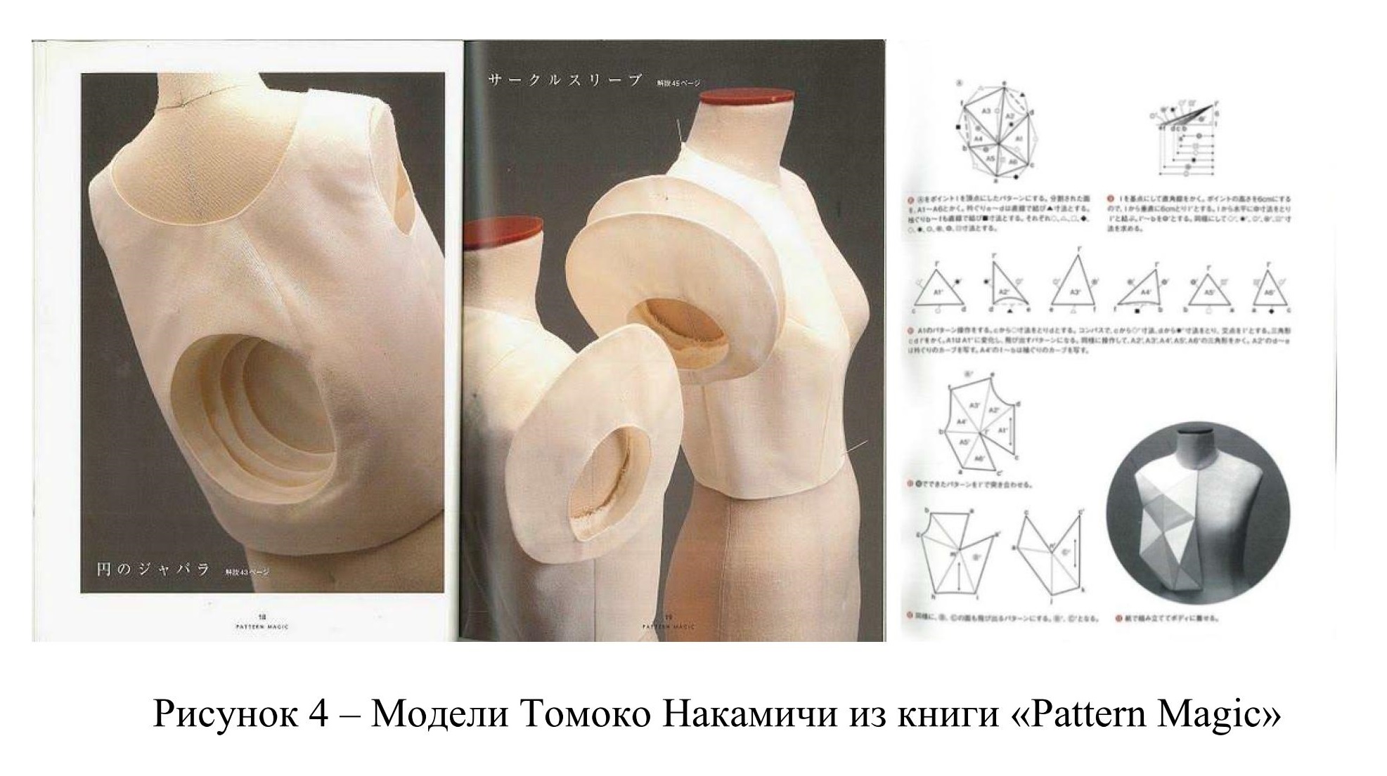 Японский модельер Томоко Накамичи живет и работает в Токио, преподает в старейшем и престижном колледже моды Банка (Bunka Fashion College). Томоко читает лекции в Японии и за рубежом на тему авторского метода построения выкроек и лекал одежды. Начиная с 2010 г., она издала четыре культовые книги из серии «Pattern Magic». Черпая вдохновение из окружающего мира, природы, архитектуры, геометрических фигур, автор демонстрирует процесс создания одежды как волшебство и магию рождения фантазийных форм. В книгах представлен творческий подход к созданию моделей с пошаговыми проектами для модельеров. Томоко описывает разнообразные приемы выполнения фактурных поверхностей, оптических иллюзий и изогнутых форм в изделиях путем разрезания исходных лекал. Каждый проект прекрасно иллюстрирован четкими схемами и фотографиями, показывающими поэтапное воплощение моделей «из плоскости в объём» [10].