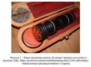 - заключая сделки, следует помнить, что у японцев не принято подписывать документы. Вместо подписи используют «ханко» - индивидуальные печати, которые есть у каждого японца (см. рисунок 1);