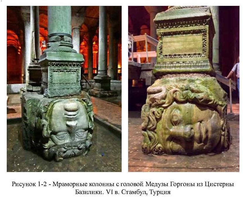 Одно из самых загадочных подземных водохранилищ Константинополя, нынешнего Стамбула, сохранившееся до наших дней и привлекающее толпы туристов – Цистерна Базилика. Грандиозные размеры сооружения: 145х65 метров напоминают дворец, 4-метровые кирпичные стены, 336 колонн, большинство из которых привезены из античных храмов, поэтому они выполнены из мрамора разных сортов и видов обработки, поддерживают высокие своды потолка (рисунки 1, 2).