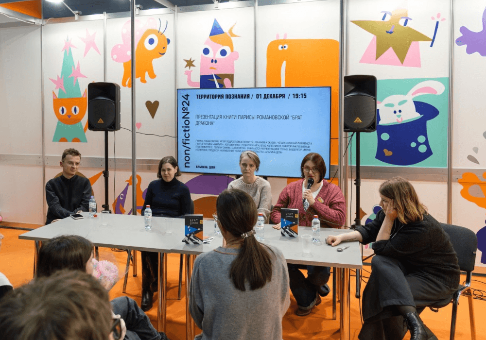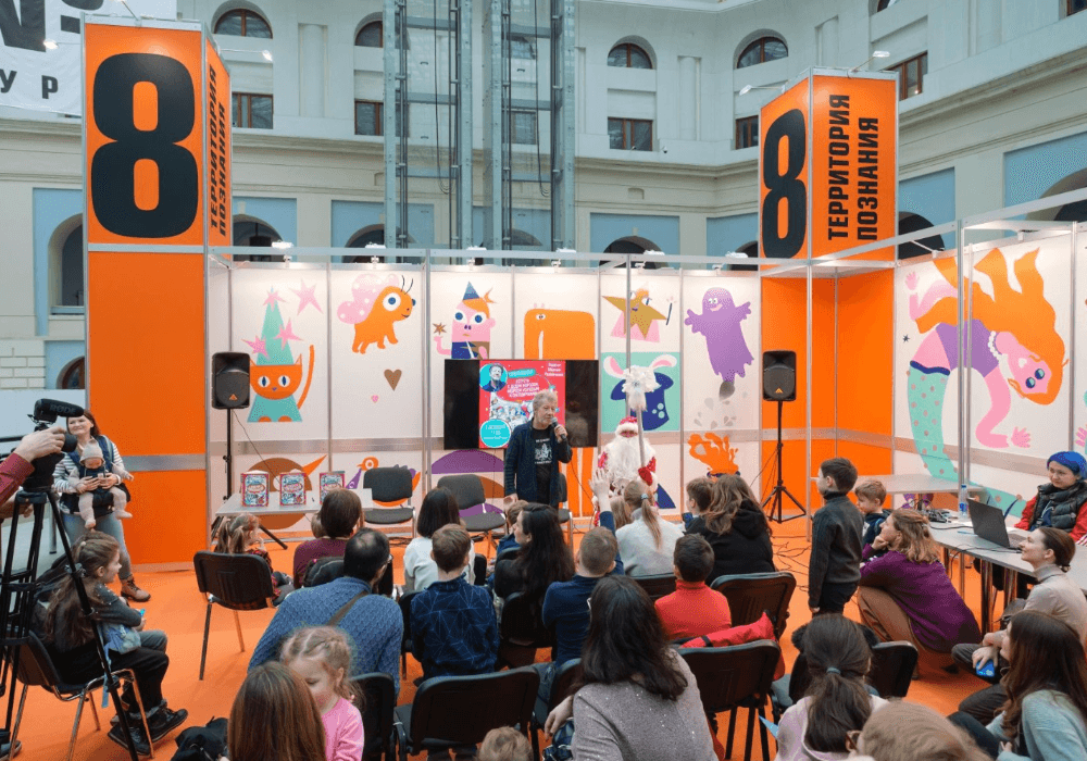Под руководством преподавателя дисциплины «Типографика» Никиты Терешина четверокурсники профиля «Иллюстрация в дизайне» оформили зону детской литературы «Территория познания» – площадку для презентации новых издательских проектов, а также обсуждения общих тем и актуальных вопросов детского книгоиздания в России.