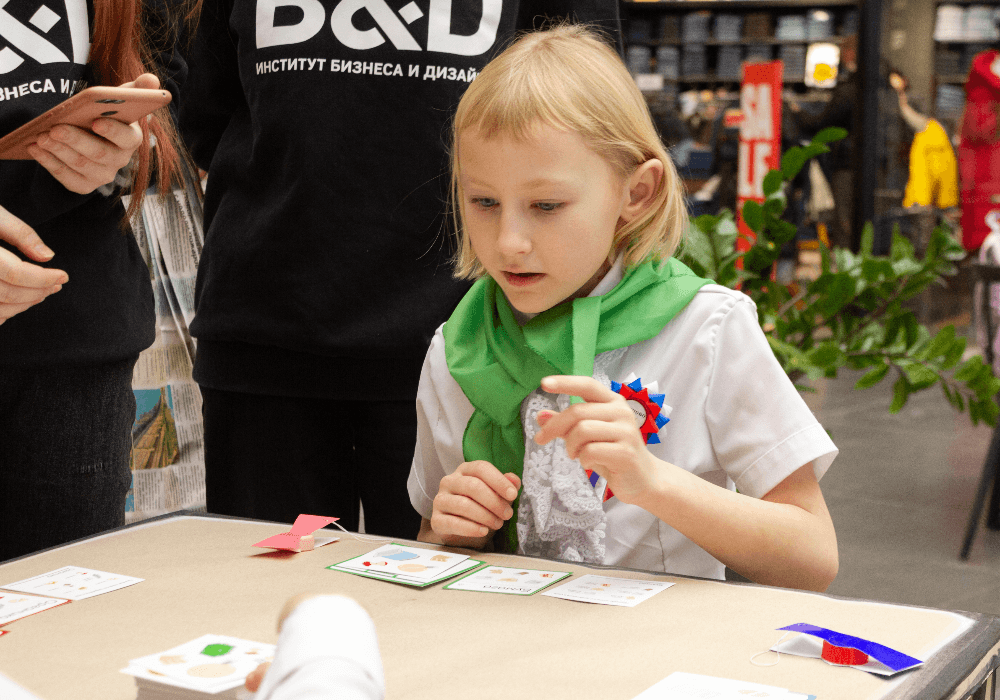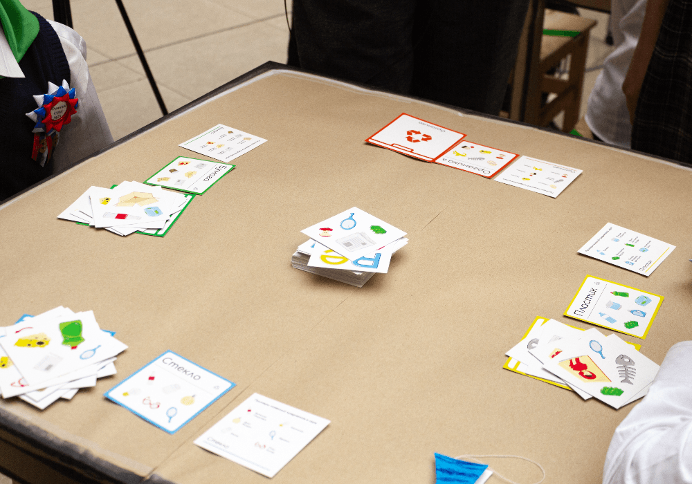 В рамках мероприятия третьекурсницы профиля «Графический дизайн» Полина Хижняк и Анастасия Недзведская разработали настольную игру о переработке мусора Reco и представили ее гостям фестиваля.
