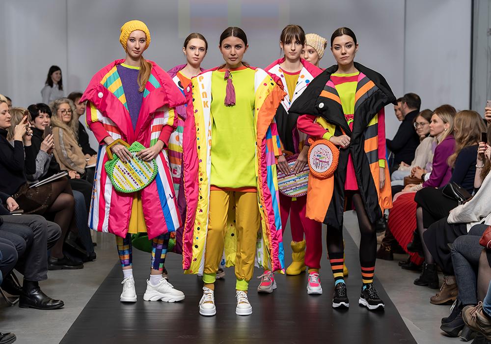 Азиза Тургунова представила свою авторскую коллекцию молодежной одежды oversize под влиянием современных субкультур стран Азии с использованием авторских принтов «PINK LEMONADE». Автор разработал серию принтов для двухсторонних пуховиков, которые покорили зрителей своей яркостью, сочетанием цветов и геометрических мотивов. Особое внимание было уделено вязанным сумкам сочных оттенков с авторским принтом.