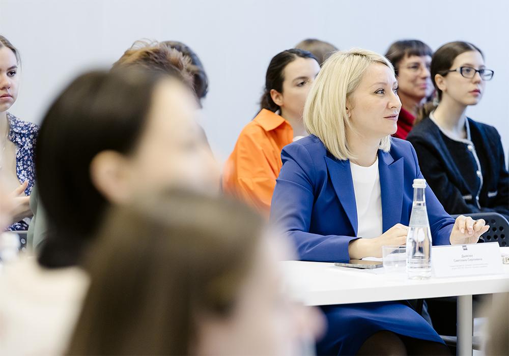 Открыла событие Мальцева Елена Сергеевна, кандидат экономических наук, доцент, заведующая кафедрой менеджмента и маркетинга B&D, эксперт в области образования. Она же выполняла роль модератора.