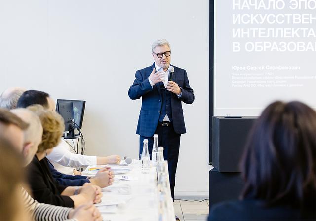 С приветственным словом, а затем с докладом на тему: «Начало эпохи искусственного интеллекта в образовании» выступил ректор института Юров Сергей Серафимович, кандидат технических наук, доцент, Член-корреспондент РАЕН, Почетный работник сферы образования Российской Федерации. Ректор задал нужную тональность и вектор развития конференции, и проблема искусственного интеллекта проходила красной нитью через большую часть выступлений.
