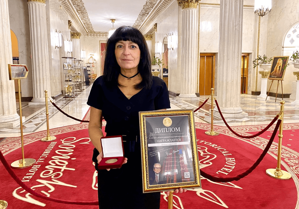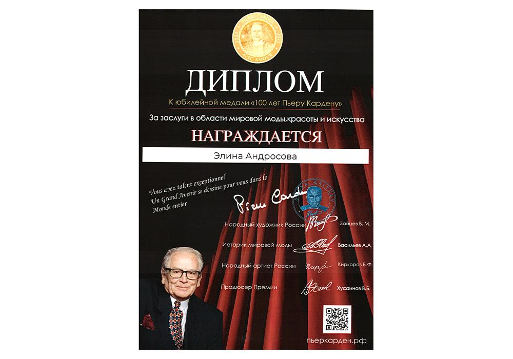 В число награжденных медалью вошла Элина Михайловна Андросова – руководитель профиля «Дизайн костюма», член Творческого союза художников РФ, член Союза дизайнеров Москвы, президент Межрегионального Объединения домов моды – Центра поддержки и развития индустрии моды, г. Москва.