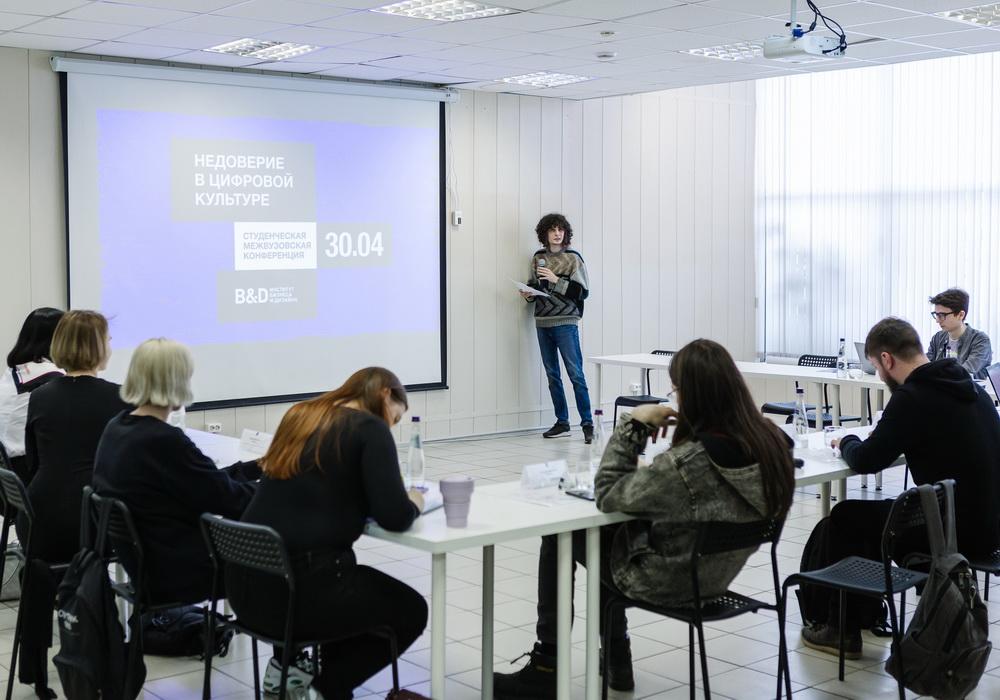 30 апреля в Институте бизнеса и дизайна состоялась Межвузовская студенческая конференция «Недоверие в цифровой культуре», программа которой включала в себя доклады и дискуссии по вопросам появления, функционирования и развития недоверия в цифровой среде.