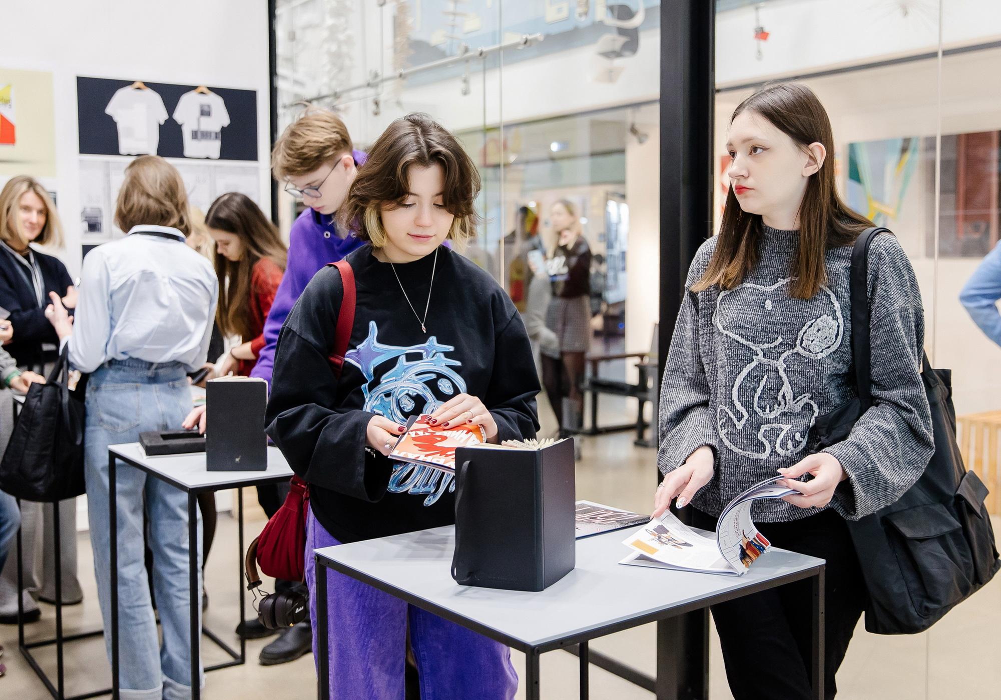 Кроме того, в этот день студенты представили свои творческие и реальные проекты по брендингу, типографике и фотографии, дизайну упаковки и айдентике, а также работы, выполненные в рамках Бизнес-практики за 2022 год (о проектах последнего семестра расскажем в отдельной новости).