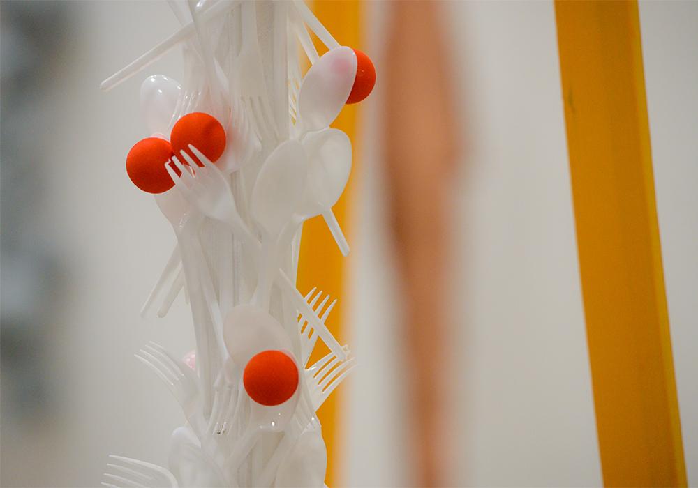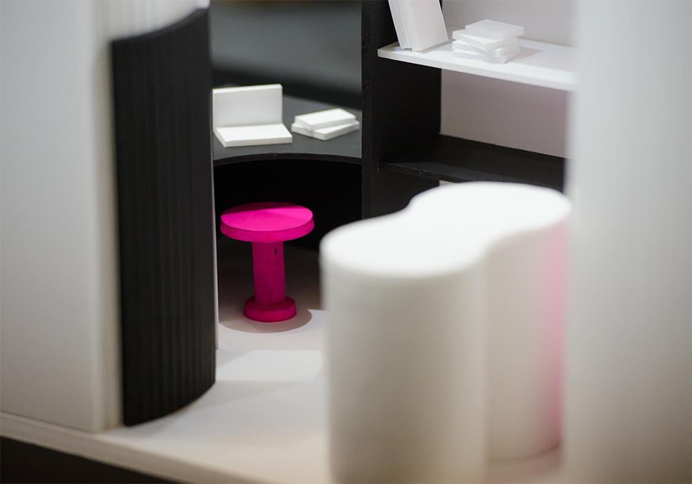 Отдельным экспонатом выставки стало концептуальное пространство, которое создавалось студентами в коллаборации с брендом MANO Factory. Выставочная зона представляла собой интерьер, элементы которого были изготовлены студентами по собственным чертежам на основе технологий компании.