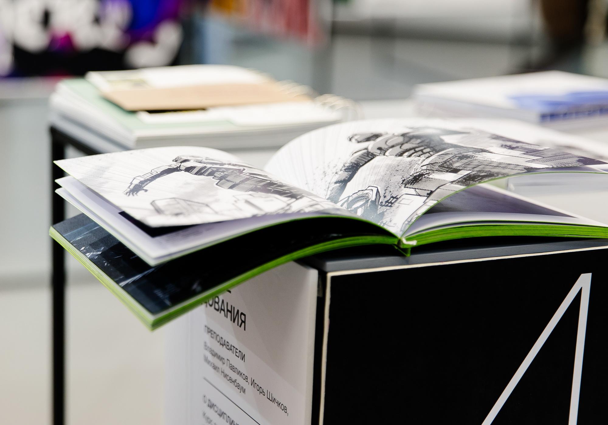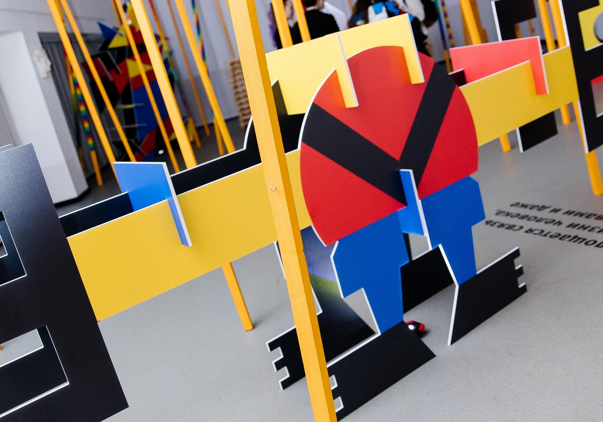 Одними из самых ярких экспонатов выставки стали работы студентов профиля «Графический дизайн», переосмысляющие футуристическую оперу Михаила Матюшина и Алексея Кручёных «Победа над солнцем». Фигуры из бумаги были созданы по мотивам эскизов Казимира Малевича.