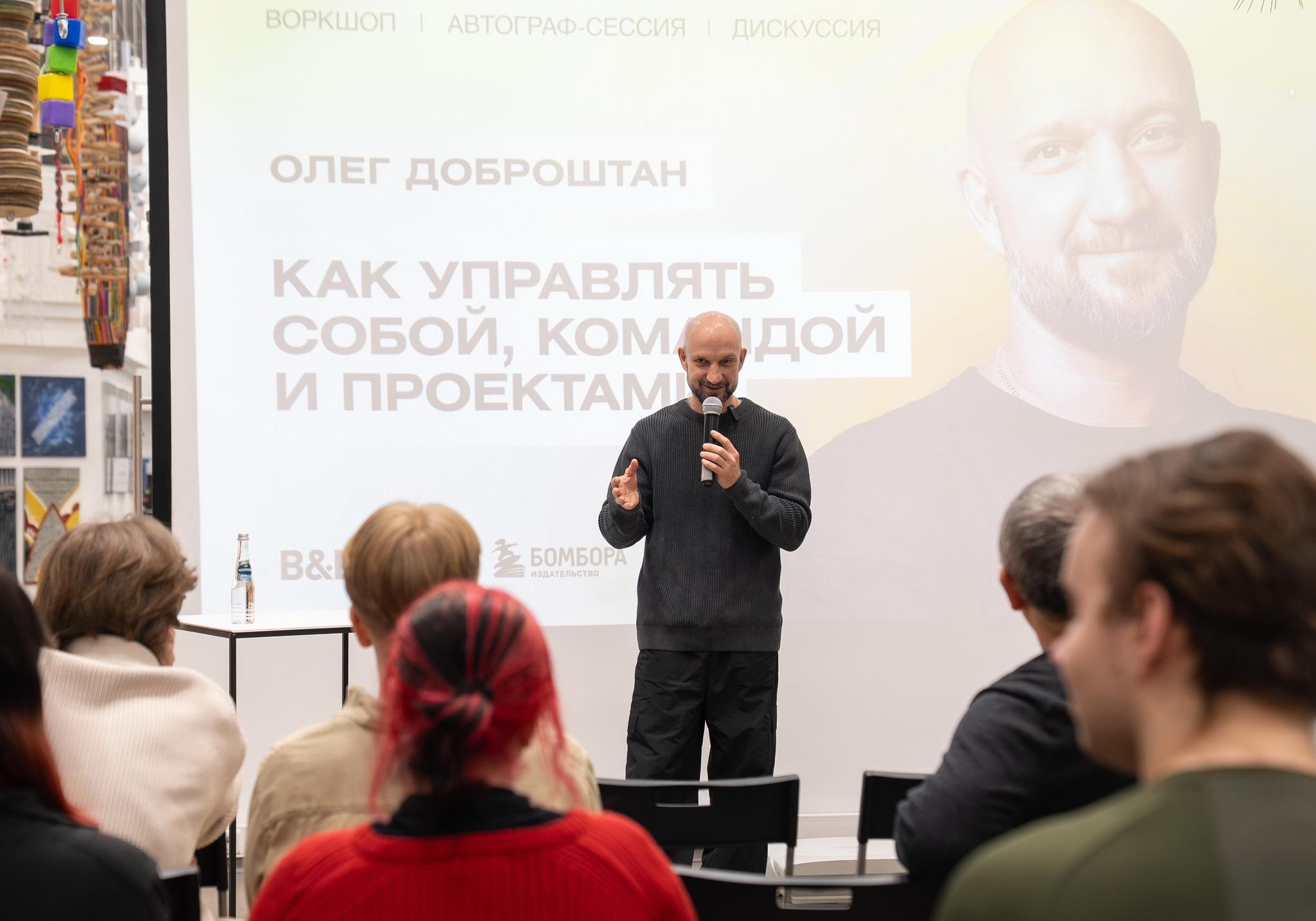 Формат встречи сочетал практикум с интерактивной сессией вопросов и ответов, в которой присутствующие смогли получить ответы на свои вопросы и разбор реальных кейсов. В завершение Олег Доброштан провёл автограф-сессию с гостями на своей книге «Руководитель в IT-индустрии», выпущенной издательством «Бомбора».