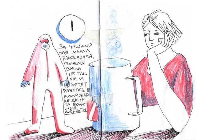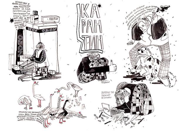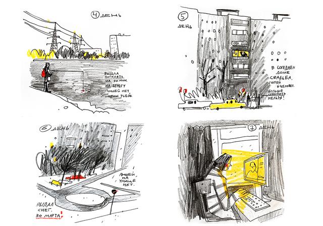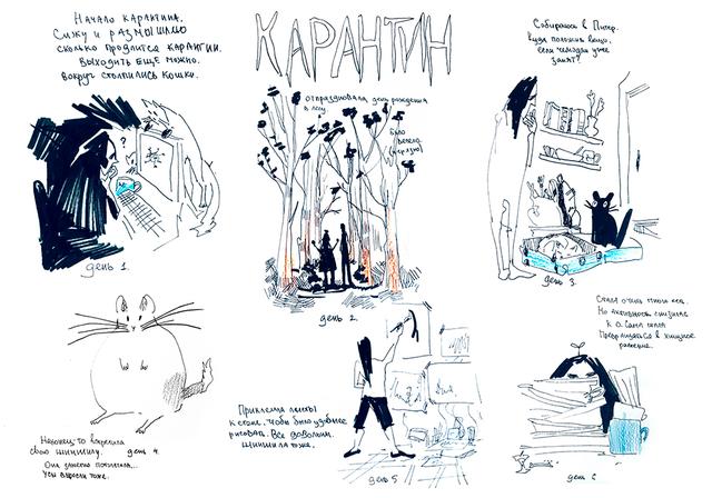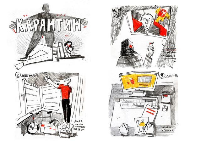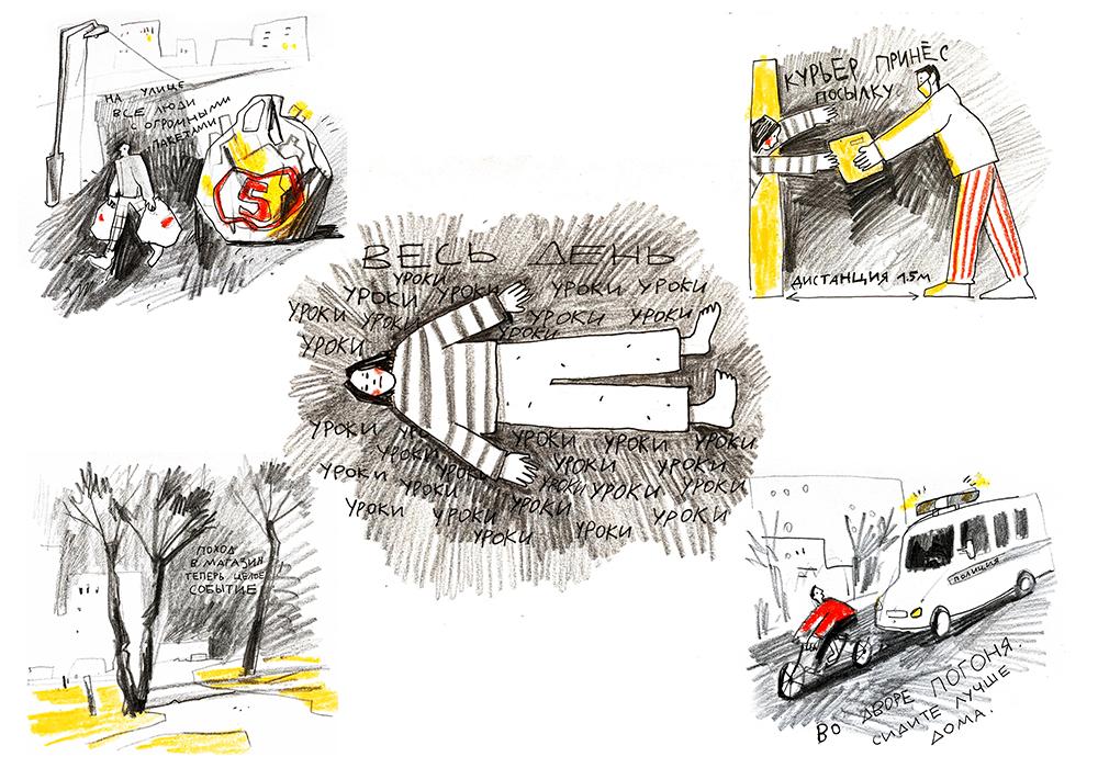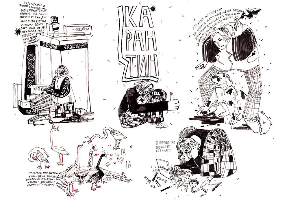Студенты профилей «Иллюстрация» и «Анимация», к примеру, начали вести «карантинные» заметки, в которых отразили свои мысли и чувства. Каждый использует для этого индивидуальный графический язык, благодаря чему рисунки выглядят еще эмоциональнее.