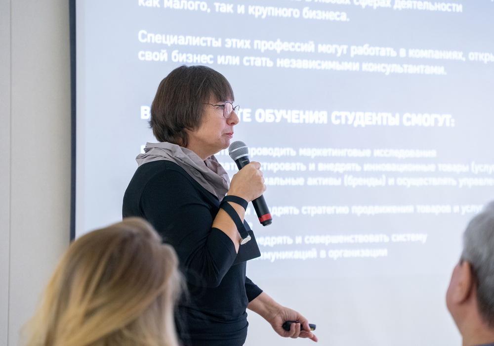 В свою очередь Марина Прокина, ведущий преподаватель дисциплин по маркетингу, рассказала, каких специалистов готовят на профиле «Маркетинг и реклама» и почему маркетинг является неотъемлемой частью любого бизнеса.