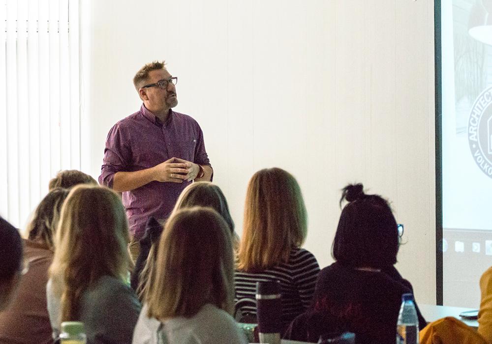 Для студентов Факультета управления бизнесом провел лекцию архитектор-дизайнер, руководитель бюро VolkovProject , доцент кафедры архитектурной среды и дизайна B&D Андрей Волков.